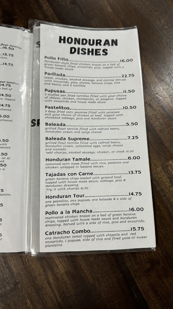One Honduran tamale with encurtido One cheese pupusa Side of rice, refried or black beans Side of yuca or plantains or both (+$1)